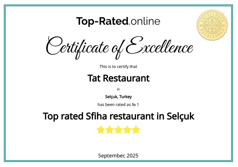 Tat Restaurant, İzmir’in Selçuk ilçesinde, dünyaca ünlü Efes Antik Kenti’ne sadece birkaç dakikalık yürüme mesafesinde yer alan seçkin bir restoran olarak hizmet vermektedir. Merkezi konumu ve zengin menüsüyle, Tat Restaurant hem Selçuk’un hem de Efes bölgesinin en çok tercih edilen restoranları arasında gösterilmektedir.